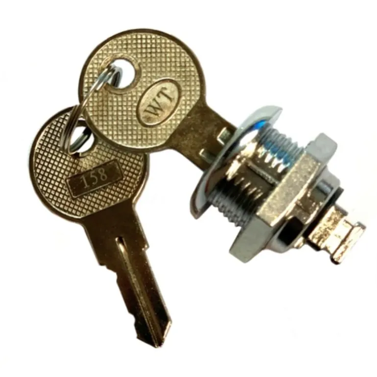 Cerradura metálica con llave en color plata, compatible con las cajas/soportes IRON-10, IRON-30 e IRON-50. Incluye 2 llaves y se entrega en embalaje compacto. Ideal para asegurar el acceso al equipo o compartimento.