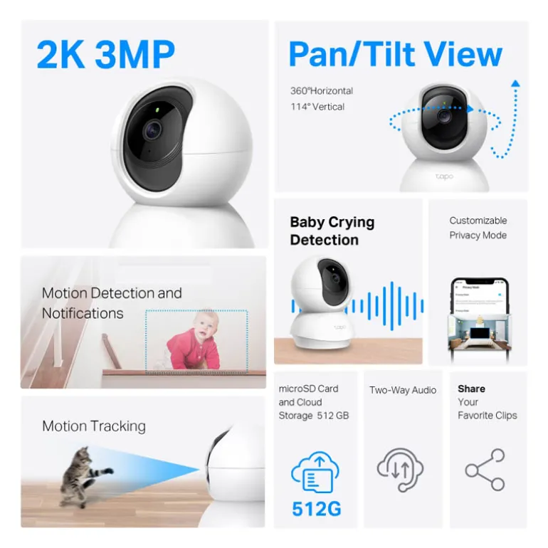 La Cámara de Vigilancia Wi-Fi Inteligente TC71 es tu aliado confiable para proteger tu hogar y familia las 24 horas del día. Con una serie de características avanzadas y una calidad de imagen excepcional, te brinda tranquilidad y seguridad en todo momento.