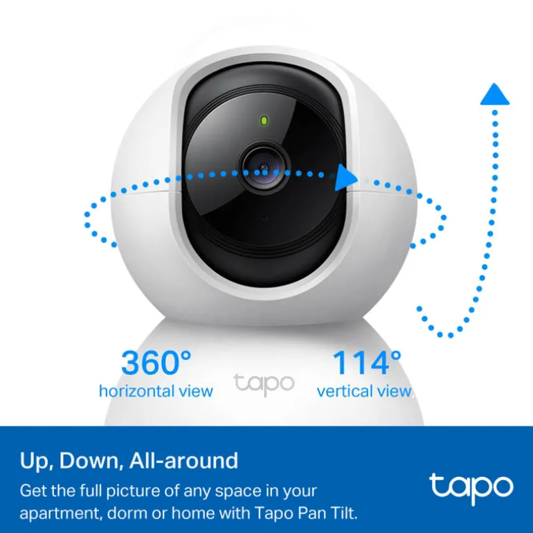 - Cámara Wi-Fi de seguridad doméstica con movimiento horizontal y vertical Tapo