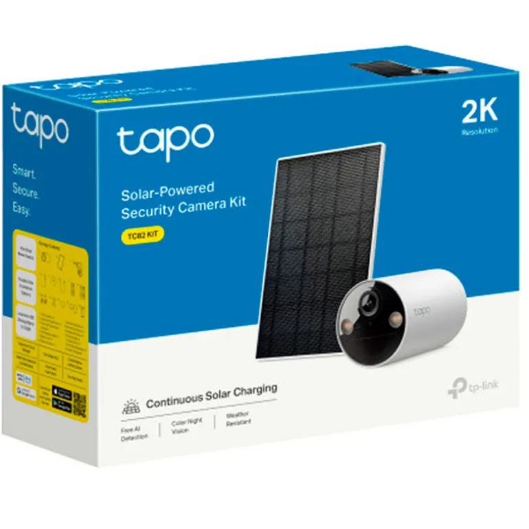 La cámara de videovigilancia TP-Link Tapo TC82 KIT ofrece una solución de seguridad sin cables, ideal para exteriores, con visión en alta resolución 2K y visión nocturna a todo color. Su batería recargable proporciona hasta 180 días de funcionamiento continuo, y es compatible con el panel solar Tapo para una carga constante. Incorpora detección inteligente mediante IA gratuita que identifica personas, mascotas y vehículos, reduciendo falsas alarmas.