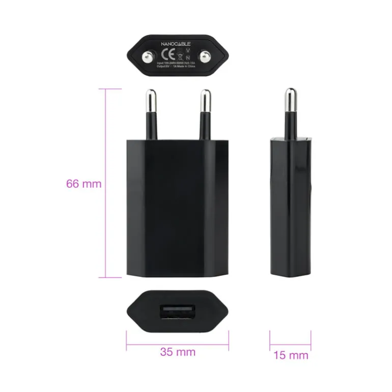 - 1 x Mini cargador USB,5V-1A, Negro