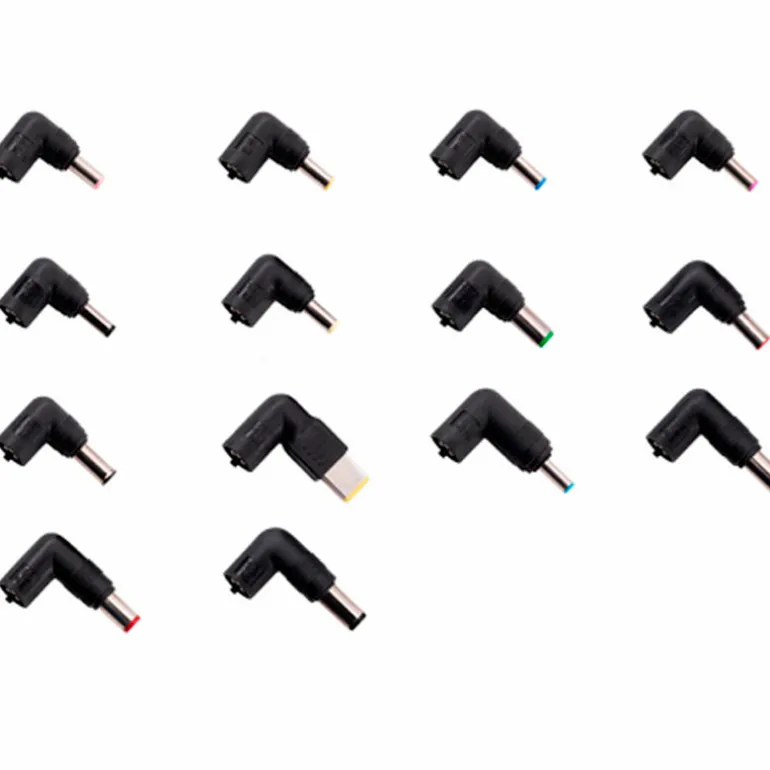 Cargador portátiles 90W con selección automática de voltaje de salida. Incluye 14 puntas de alta calidad y puerto USB de 2.1A para Smartphopnes y Tablets. Tacto suave de goma.