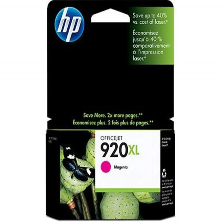 Descripción general Los cartuchos de tinta magenta HP 920XL imprimen documentos profesionales a color con un coste inferior al láser, con tintas HP Officejet. Las tintas HP Officejet originales han sido formuladas para producir documentos de secado rápido, especialmente en papeles con el logotipo ColorLok.