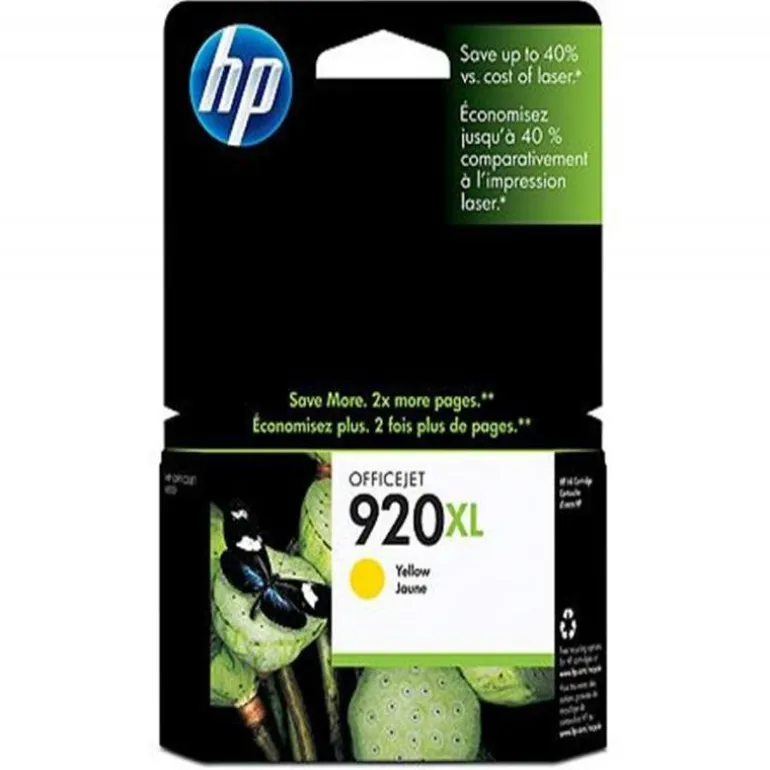 Descripción general Los cartuchos de tinta amarilla HP 920XL imprimen documentos profesionales a color con un coste inferior al láser, con tintas HP Officejet. Las tintas HP Officejet originales han sido formuladas para producir documentos de secado rápido, especialmente en papeles con el logotipo ColorLok.
