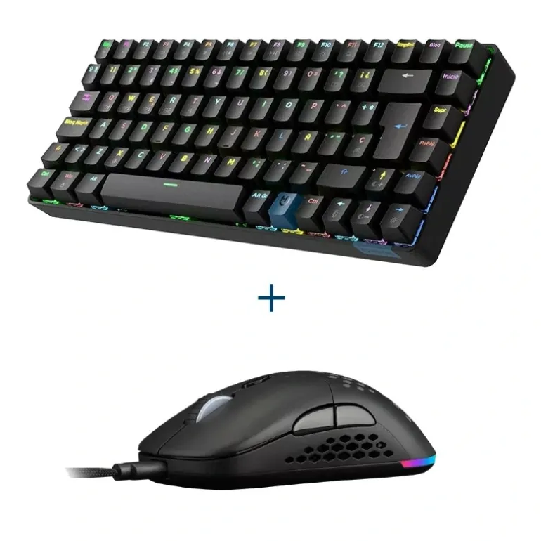 El GM1K Teclado Mecánico Inalámbrico Pro Rojo es un teclado profesional compacto con un tamaño del 75%. Presenta switches mecánicos Gateron® Pro 2.0 con sistema Hot-Swap, lo que permite cambiar los switches de manera rápida y sencilla. Ofrece conectividad inalámbrica, Bluetooth 5.0 y cable USB. Los switches Gateron® Red Pro 2.0 son ideales para juegos, con una fuerza operativa de 45 g y distancia de 2 mm. Vienen lubricados de fábrica para evitar ruidos molestos. Se incluye una herramienta para la extracción de keycaps y switches. El GX30 es un ratón gaming ligero con sensor PIXART 3395 de 26,000 dpi y hasta 70 horas de autonomía. También presenta un sistema de hot swap switches para reemplazarlos fácilmente. Incluye un juego adicional de dos switches KAILH con 80 millones de pulsaciones de durabilidad.