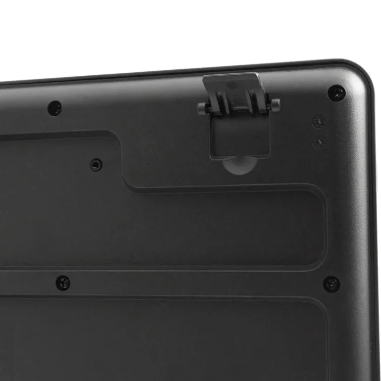 El teclado, de distribución ISO española, cuenta con 105 teclas de perfil bajo silenciosas y bloque numérico separado. Además es resistente a salpicaduras.