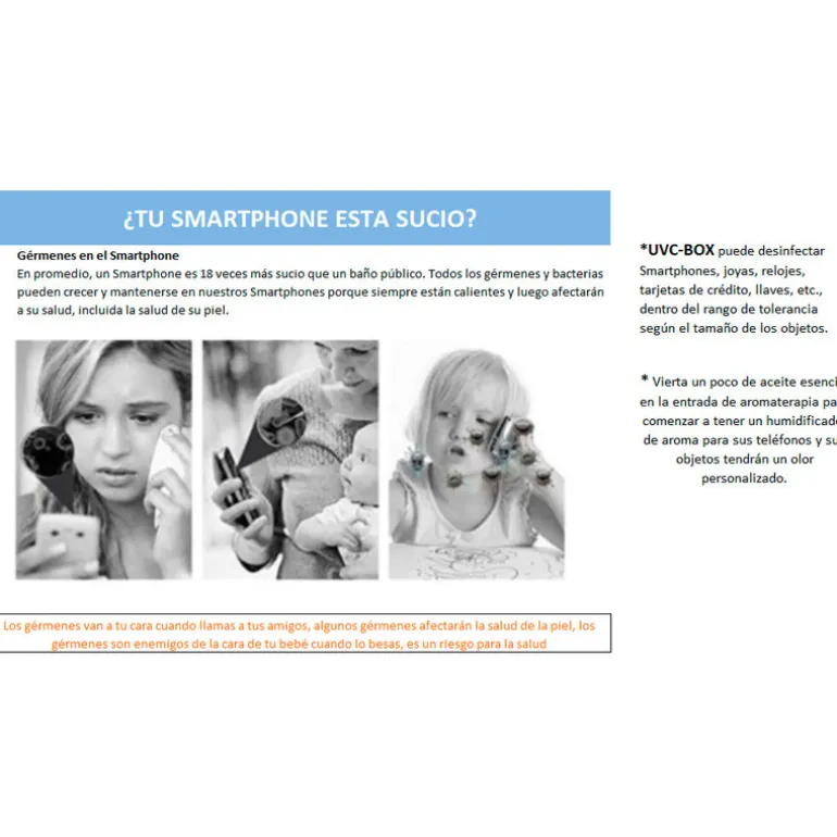 En solo un minuto podrás disfrutar de tu terminal u objeto esterilizado, otros esterilizadores del mercado tardan más de 5 minutos en limpiar bacterias y gérmenes, terminales y objetos. - Portátil y plegable