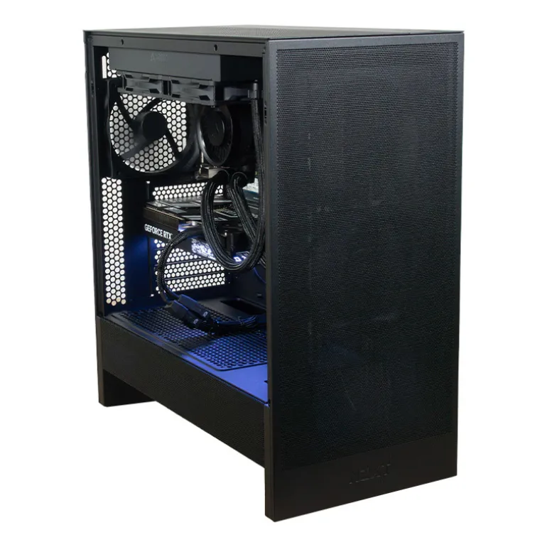 Torre ATX compacta con diseño optimizado para flujo de aire. Incluye ventiladores preinstalados, soporte para radiadores de hasta 280 mm, gestión de cables eficiente y frontal perforado para máxima ventilación. Estilo minimalista y estructura robusta.