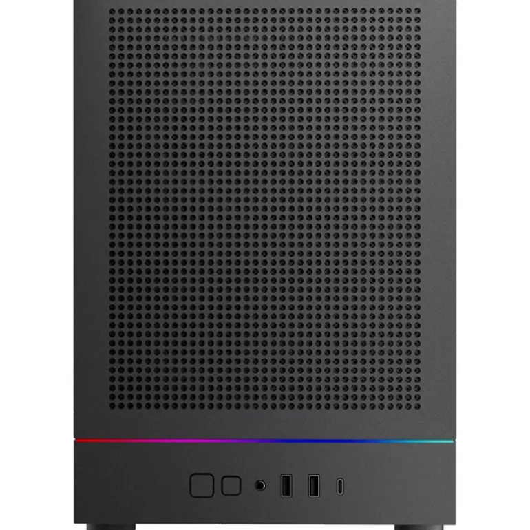 La ATHENA M4M es una caja micro torre compacta diseñada para ofrecer rendimiento y estilo, con un panel frontal completamente perforado de malla, una tira de iluminación RGB dinámica y tres ventiladores NOTUS M1 de 120?mm incorporados para un flujo de aire optimizado. Es compatible con radiadores duales de 360?mm, placas base BTF y tarjetas gráficas de hasta 395?mm, ofreciendo una compatibilidad avanzada y un rendimiento térmico destacado en un diseño eficiente en espacio, lo que la convierte en una opción ideal para montajes compactos de alto rendimiento.