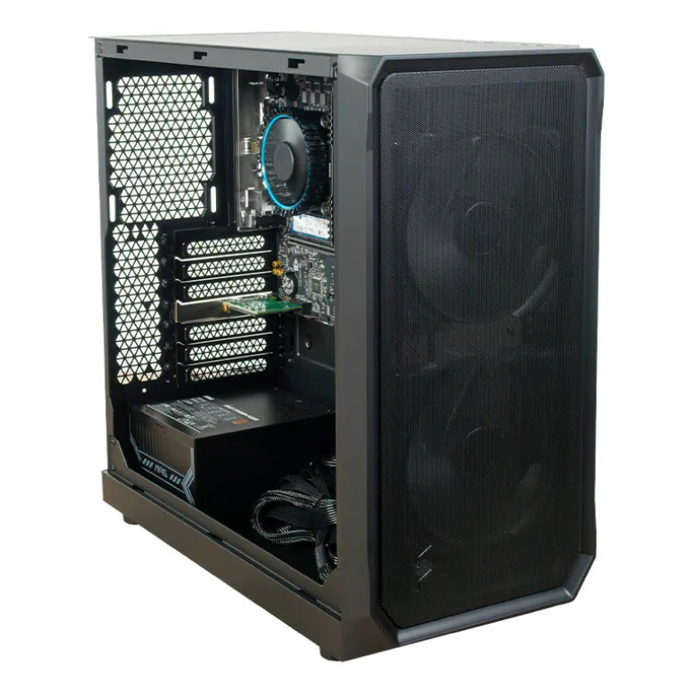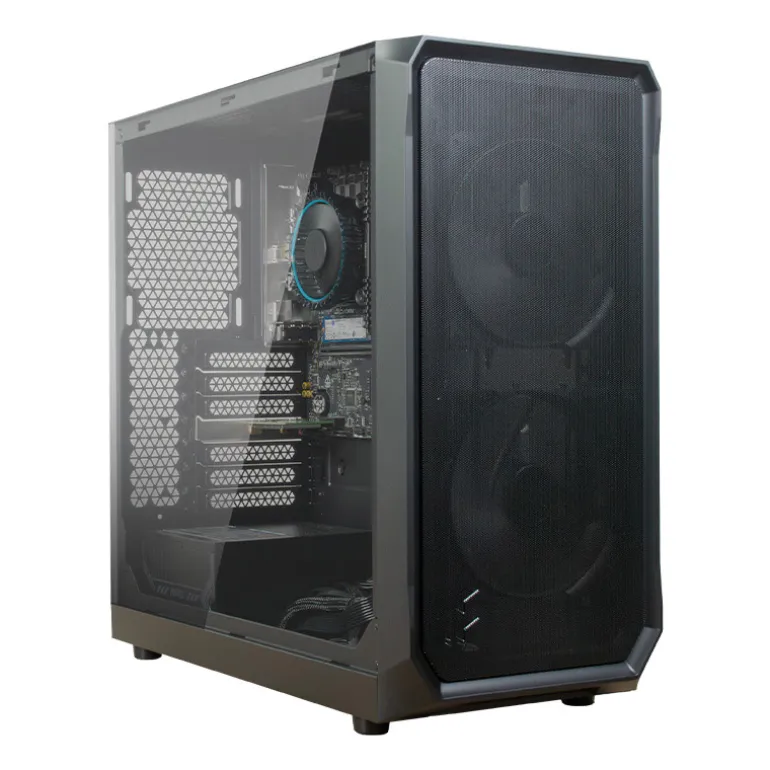 Torre ATX Mid Tower minimalista y robusta, con diseño limpio y estructura optimizada para flujo de aire. Compatible con radiadores de hasta 240 mm, placas base ATX/Micro-ATX, y múltiples ventiladores frontales y superiores. Fabricación sólida con enfoque en funcionalidad y gestión térmica.
