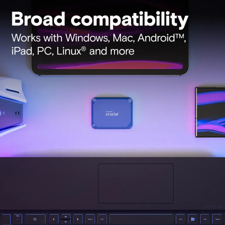 El X10 ofrece velocidades de lectura de hasta 2.100MB/s y un espacio de almacenamiento cómodo para ampliar tu biblioteca de juegos en PC.