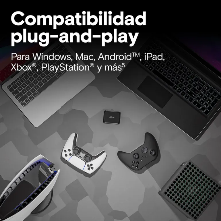Almacenamiento fiable para sus dispositivos favoritos, vaya donde vaya, eso es lo que ofrece la SSD portátil Crucial X9.