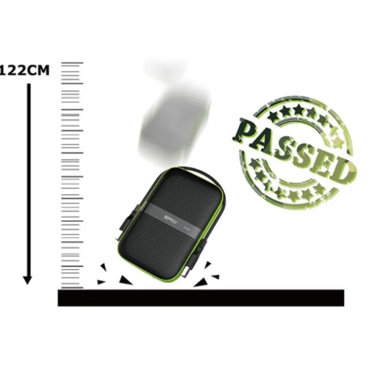 Su carcasa exterior en caucho y su sistema de suspensión interna, hacen del Armor A60 el dispositivo ideal para almacenar todos sus datos. Resistente a golpes de grado militar de hasta 3 metros (MIL-STD 810G 516.6, procedimiento IV) y a salpicaduras de agua (índice de protección IPX4) podrá llevarlo con usted dondequiera que vaya. - Mucho Más Que Un Look Original