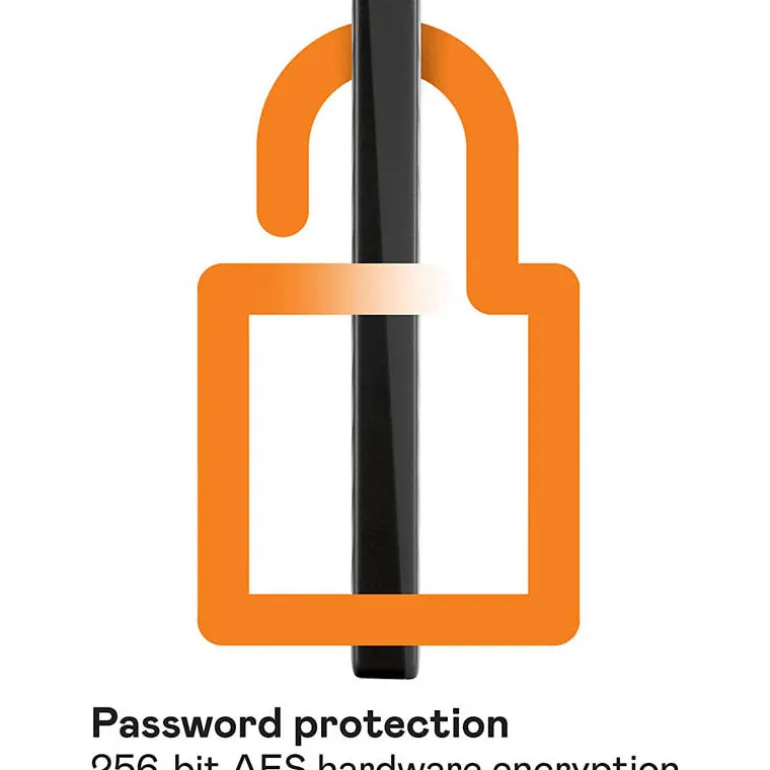 El disco My Passport鈩ón mediante contraseña y cifrado por hardware AES de 256 bits para ayudarle a proteger el contenido de su vida digital. Simplemente, active la protección mediante contraseña y configure su contraseña personalizada con WD Discovery鈩