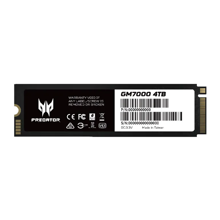 El SSD Predator GM7000 M.2 elimina las limitaciones de velocidad para juegos (con una velocidad de lectura de hasta 7400 MB/s) y ofrece hasta 4 TB de capacidad. Es un SSD repleto de funciones que utiliza PCIe 4.0, una controladora insignia de 8 canales de 12 nm, caché DRAM independiente, corrección de errores LDPC de 4K (ECC) y cifrado AES.