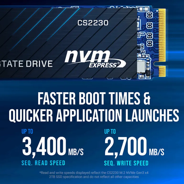 El CS2230 utiliza la interfaz PCIe Gen3 x4 con NVMe para ofrecer velocidades de transferencia muy superiores a las SSD SATA convencionales. Esto se traduce en arranques del sistema, carga rápida de aplicaciones y transferencia ágil de datos, ideal para usuarios que demandan mayor eficiencia y rapidez en sus equipos.