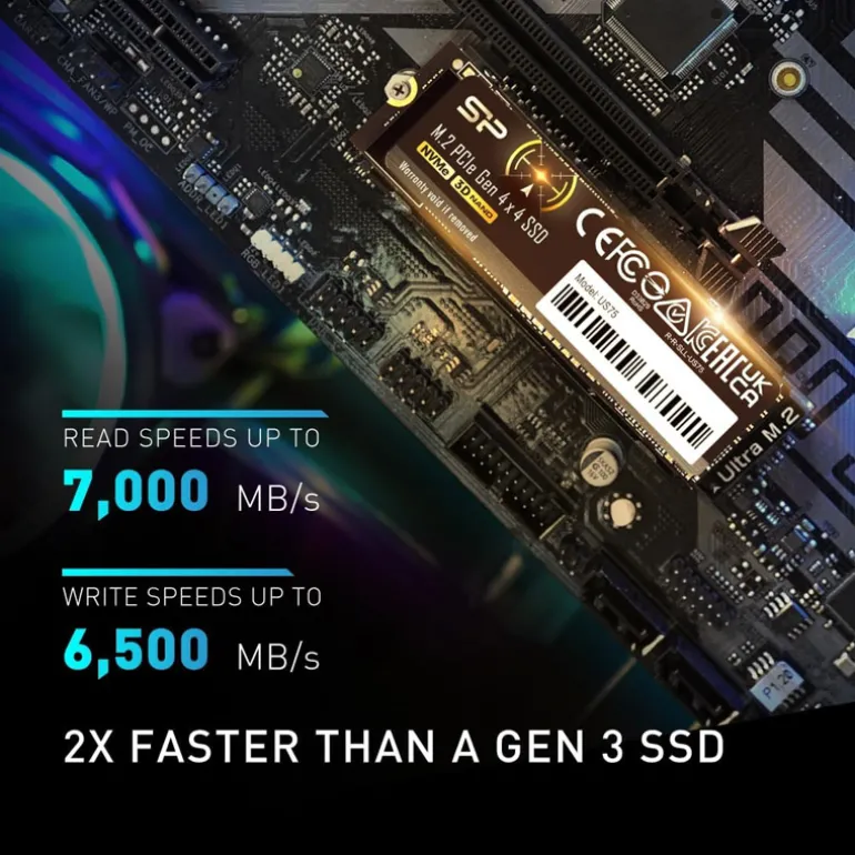 Equipado con interfaz PCIe Gen4 x4 NVMe, el US75 alcanza velocidades de lectura de hasta 7.000 MB/s y escritura de hasta 6.500 MB/s, permitiendo trabajar con archivos pesados, renderizados y cargas intensivas sin cuellos de botella.