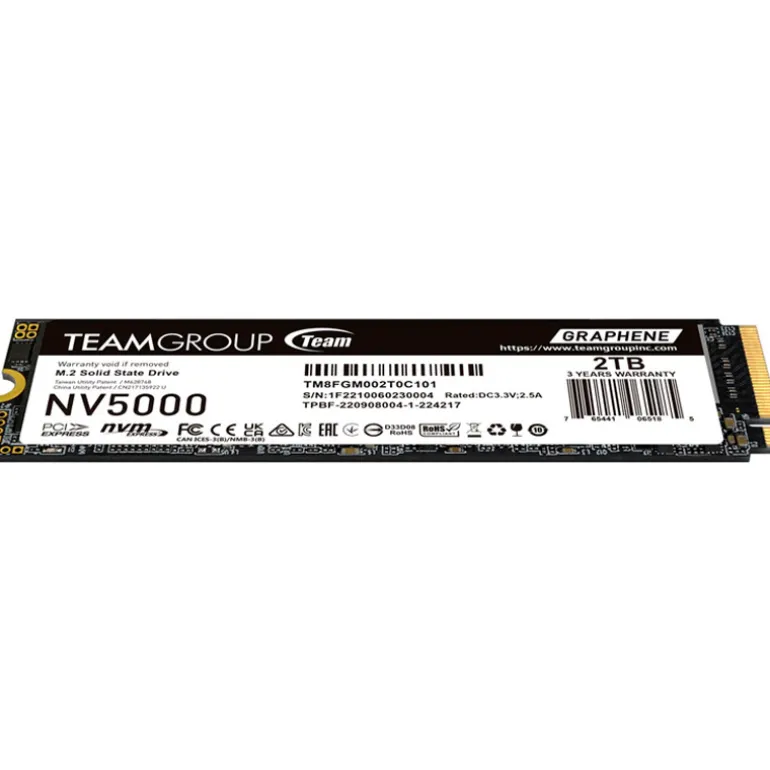 La exclusiva etiqueta disipadora de calor con grafeno, desarrollada por TEAMGROUP, ayuda a mantener temperaturas óptimas y un rendimiento estable en todo momento. Compatible con las plataformas más recientes de Intel y AMD, la NV5000 es perfecta tanto para PCs de escritorio como para laptops.