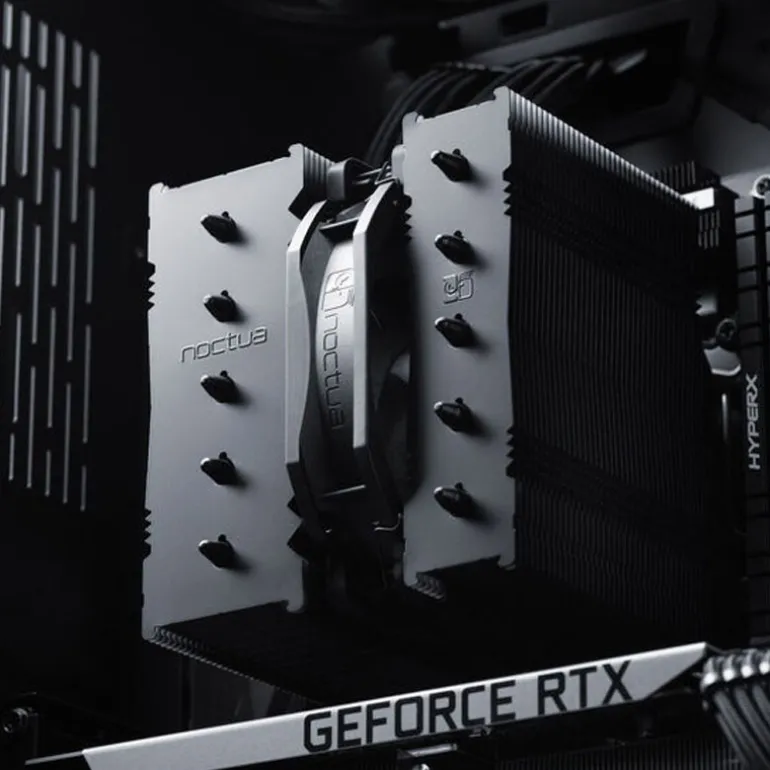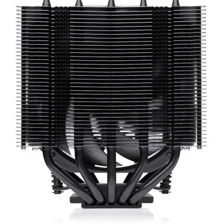 El NH-D12L chromax.black es una versión totalmente negra del galardonado refrigerador de CPU de baja altura y 120 mm NH-D12L de Noctua que ha sido concebido para combinar un rendimiento de refrigeración silencioso excepcional con una compatibilidad de carcasa superior. Con una altura de solo 145 mm (13 mm menos que los modelos normales de 120 mm de Noctua), se adapta a muchos gabinetes de 4U, así como a cajas de torre más estrechas que anteriormente se habían limitado a soluciones con ventiladores de 92 mm. Al mismo tiempo, su diseño de doble torre de cinco tubos de calor y el ventilador NF-A12x25r de 120 mm de última generación le permiten alcanzar un nivel de eficiencia que supera muchos modelos de 120 mm de altura completa.
