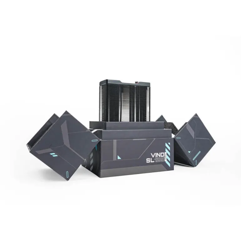 El paquete incluye todo lo necesario para una instalación sencilla y un rendimiento óptimo, desde el propio refrigerador Valkyrie Vind 125SL hasta el software de control Valkyrie, pasando por el mecanismo de montaje, los fans Valkyrie X12 de alta performance, el paso térmico y una garantía de 5 años para una total tranquilidad.