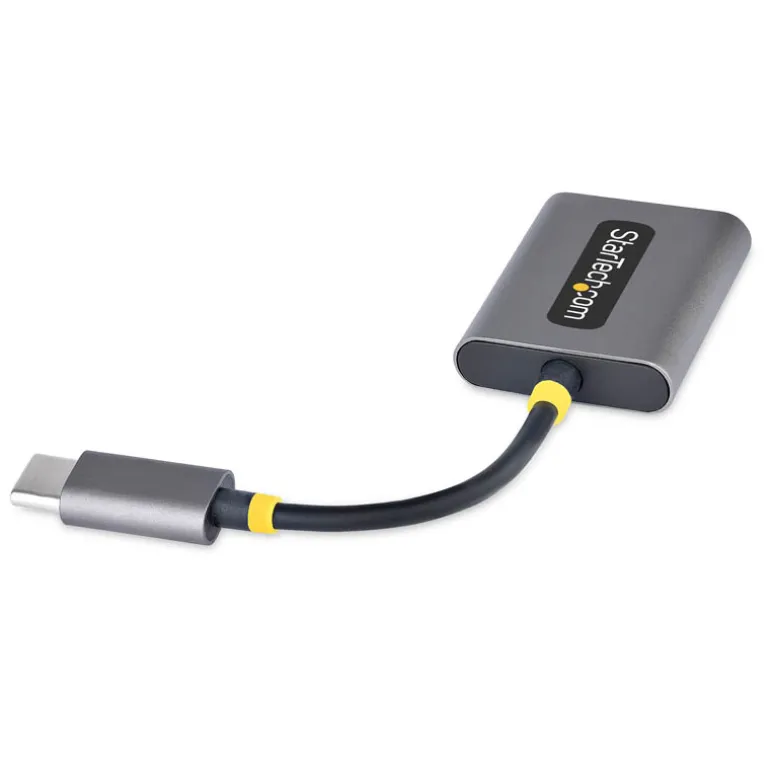 USBC-AUDIO-SPLITTER permite dos conexiones de audio de 3,5 mm, utilizando este divisor de auriculares USB-C. Ambos puertos de 3,5 mm son capaces de transmitir señales de salida de audio estéreo y de entrada de micrófono. Los puertos de 3,5 mm aceptan conectores TRRS de 3,5 mm de 4 posiciones.