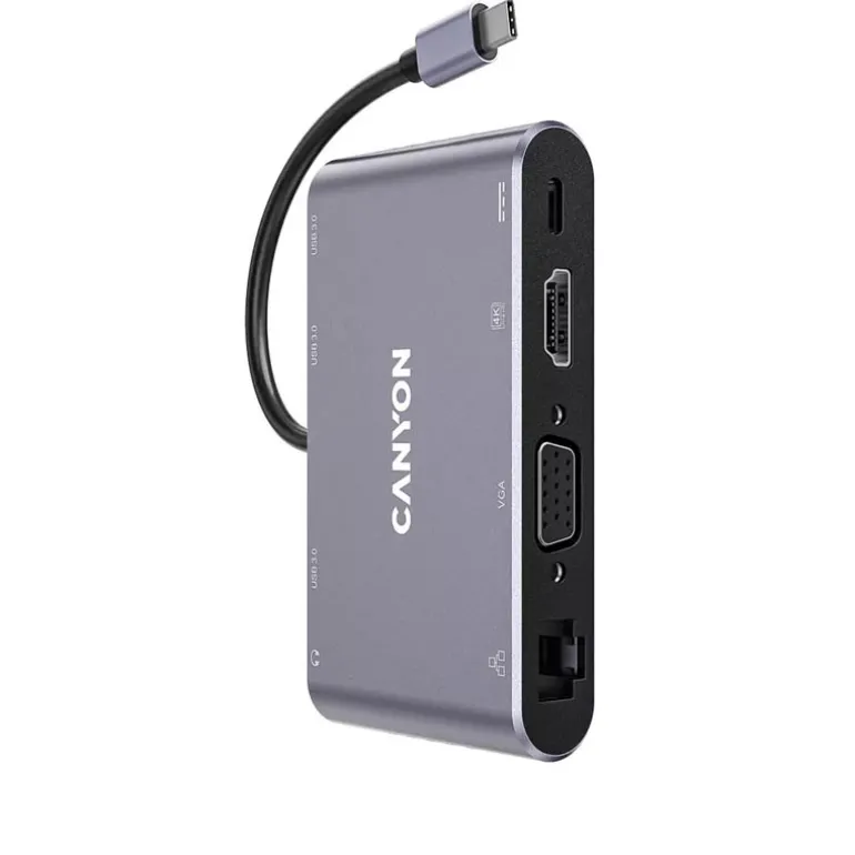 El concentrador DS-14 convierte un puerto USB-C en ocho conectores versátiles. Podrá conectar el monitor a través del puerto HDMI o VGA. Hay un mini-jack para auriculares o altavoces. Tres puertos USB-A 3.0 le permiten conectar tres accesorios periféricos a la vez de manera conveniente. El puerto de carga USB-C PD de hasta 100 W le permite cargar su dispositivo conectado a una velocidad óptima. Puede conectarse directamente a la red a través de Gigabit Ethernet usando el concentrador. La carcasa de aluminio liviana y duradera ayuda a mantener la calidad de la señal. «Plug and Play»: conecte el concentrador y trabaje sin instalar software adicional. El centro ocupará un espacio mínimo en su bolso debido a su tamaño compacto. ¡La combinación perfecta de tamaño y funcionalidad!