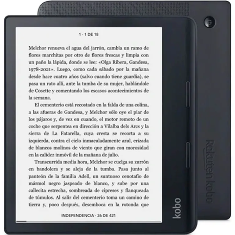 Kobo Sage se diseñó de cero con una CPU multinúcleo y una Wi-Fi de doble banda más rápida para ofrecer un gran rendimiento en un elegante paquete. Estilizado y ligero, puedes manejar Kobo Sage fácilmente en modo horizontal o vertical. Con una sola mano, puedes pulsar los botones para pasar página y seguir con el hilo de la historia. Gracias a su diseño ergonómico y totalmente resistente al agua*, Kobo Sage te acompaña en la sala de conferencias y en la bañera. Bienvenido a una experiencia de lujo.* Cumple los requisitos de la clasificación IPX8. Resistente al agua hasta una profundidad de 2 metros durante 60 minutos como máximo.