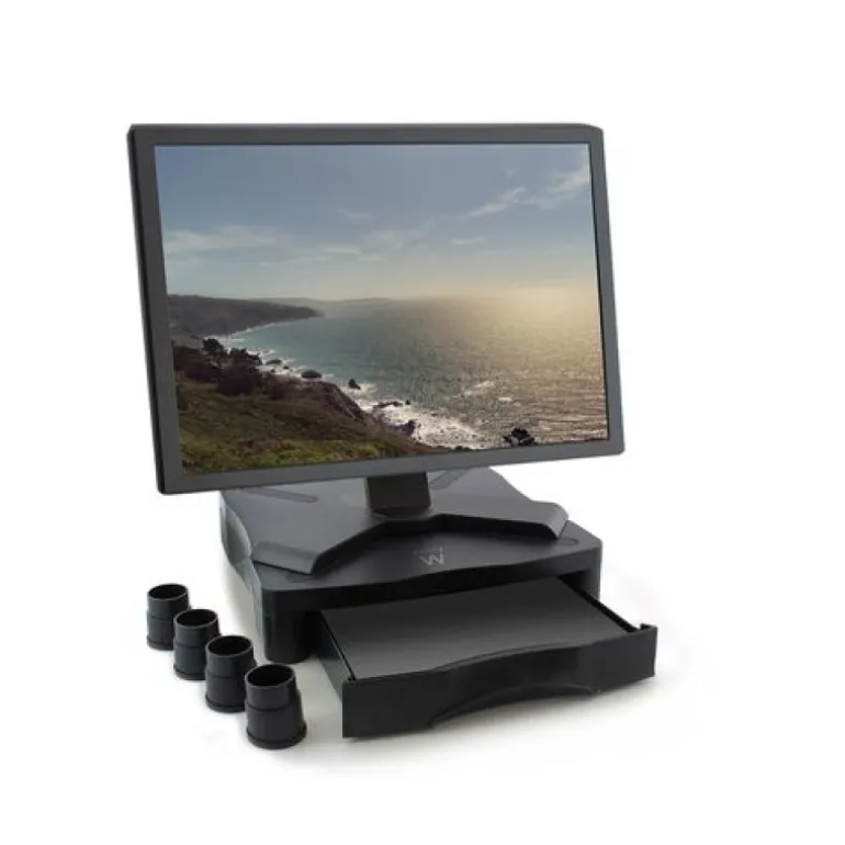 El Elevador de Monitor EW1280 eleva su monitor a una altura cómoda para usted. Organice sus cables con el sistema de cableado. En su útil cajón podrá almacenar sus folios A4 y su material de escritorio. Sus patas de goma antideslizantes garantizan la estabilidad del Elevador de Monitor.