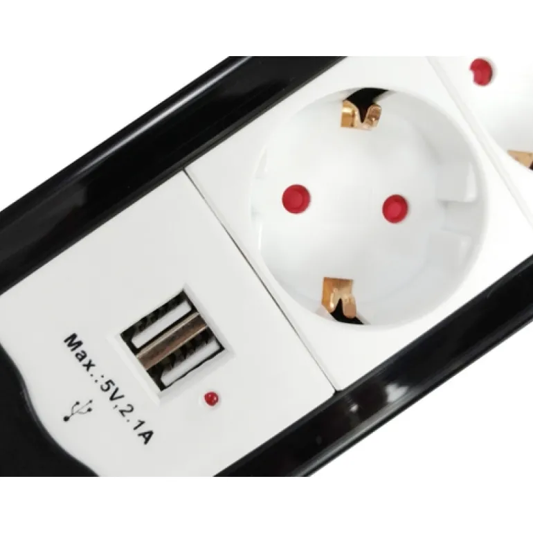 El equip 245553 4-Socket Power Strip viene con 4 salidas estándar y 2 salidas USB, se adapta a la mayoría de sus dispositivos con alimentación y ofrece una fuente de alimentación segura. 鈥ón: 250V, 16A 50 / 60HZ, Máx. 3500W 鈥² x 1.5M 鈥ón infantil 鈥ón de sobrecarga 鈥