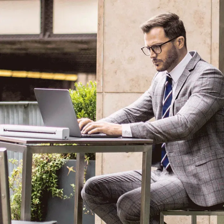 Una excelente opción para áreas de recepción y trabajos en movilidad. Escanea de forma sencilla tarjetas de visita, tarjetas plásticas, fotos, tickets o documentos A4.