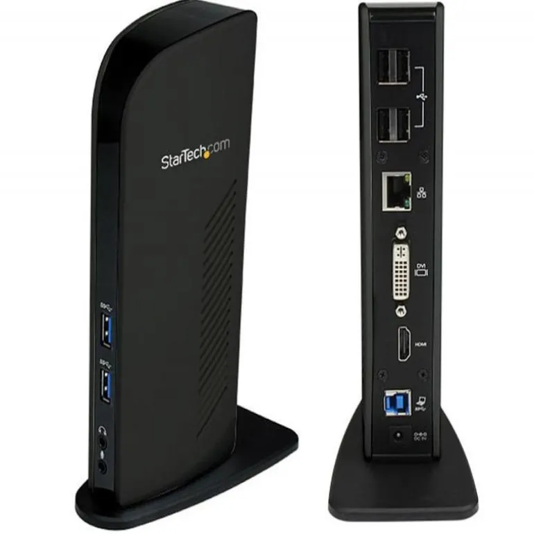 La Estación de Acoplamiento Universal USB 3.0 para Laptop con DVI, HDMI, Audio y Ethernet, USB3SDOCKHD permite agregar dos salidas de video, jacks para auriculares y micrófono, así como puertos Gigabit Ethernet y USB 3.0 y USB 2.0 a una laptop, todo desde un único dispositivo y a través de una sola conexión USB 3.0 SuperSpeed.