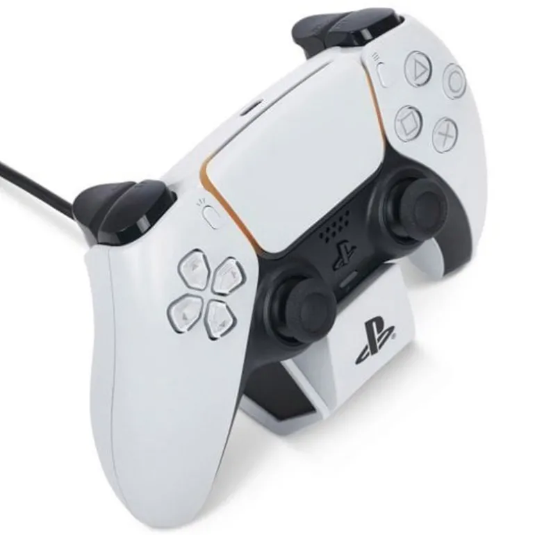 Carga y exhibe tu control inalámbrico DualSense鈩la estación de carga Solo, con licencia oficial para el control inalámbrico DualSense. Cargar el control inalámbrico DualSense es sencillo, solo tienes que colocarlo en la estación de carga. Una vez que esté completamente cargado, coge el control y ponte a jugar, o déjalo en la estación de carga como un atractivo adorno. Ten la certeza de que tu control estará siempre listo para jugar, ya que se carga mientras lo muestras junto a tu PS5.