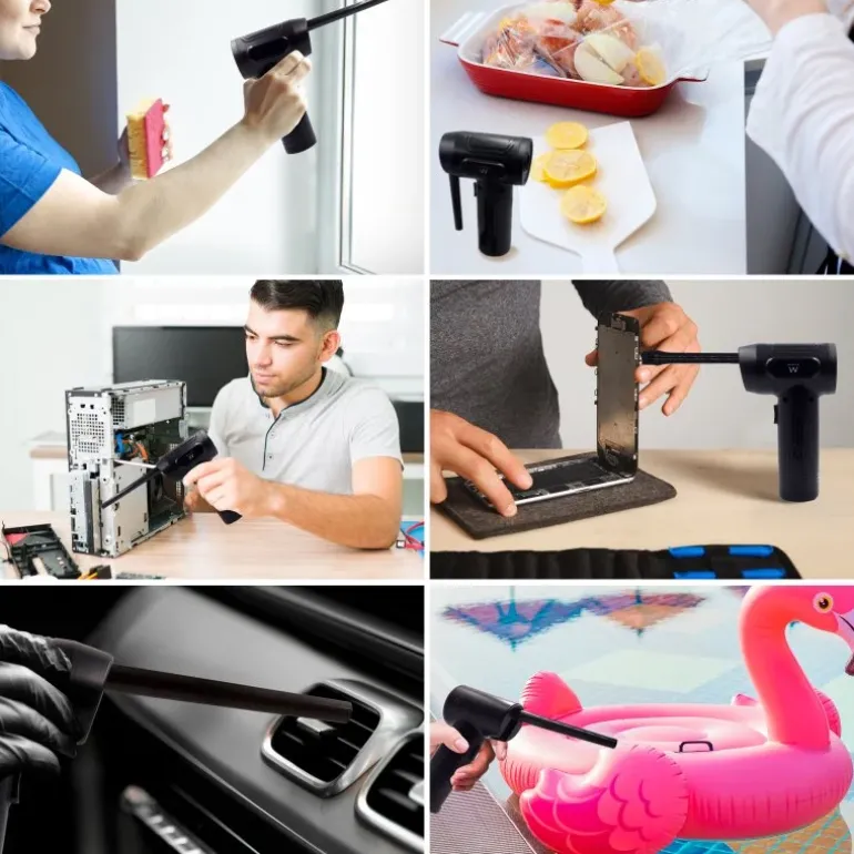 El soplador de aire EWENT EW5607, está especialmente diseñado para utilizarse en diferentes dispositivos electrónicos para su limpieza y eliminación de polvo. Limpia el polvo de tu teclado, ordenador, etc, de una forma rápida y cómoda. A parte del uso cotidiano en el hogar, oficinas, coche, etc, está recomendado especialmente también para el uso en los servicios técnicos de componentes electrónico. Al ser aire soplado mecánicamente, no emite humedad, impidiendo que los objetos o dispositivos donde se use puedan deteriorarse.