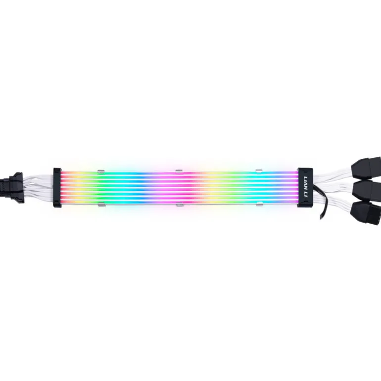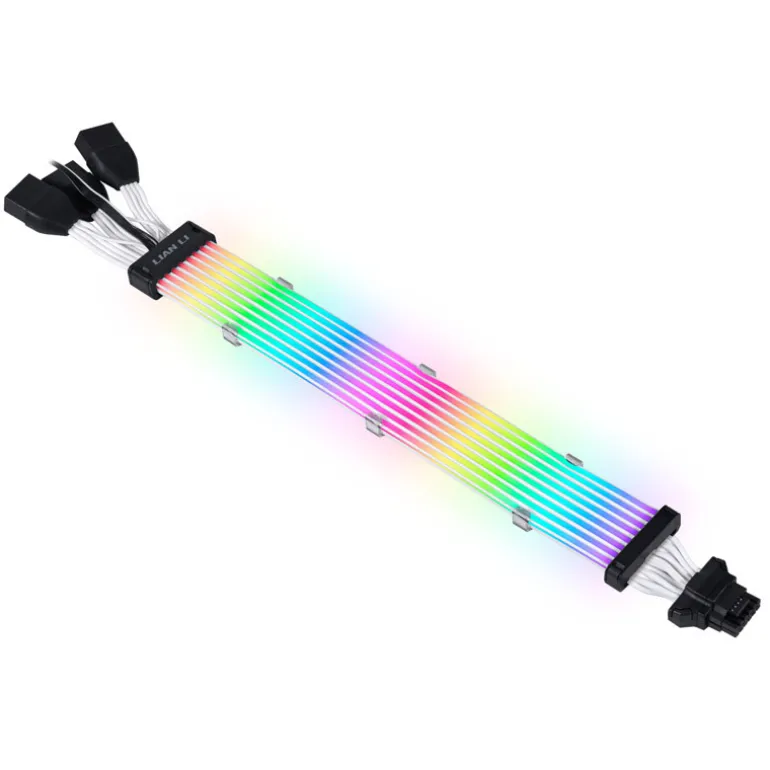 Cables de extensión RGB direccionables altamente personalizables. Disponibles para placa base de 24 pin, GPU doble de 8 pines y GPU triple de 8 pines. Crea un aspecto de PC único con una calidad y un material excepcionales. Es compatible con L-Connect 3 para personalizar los efectos de luz.