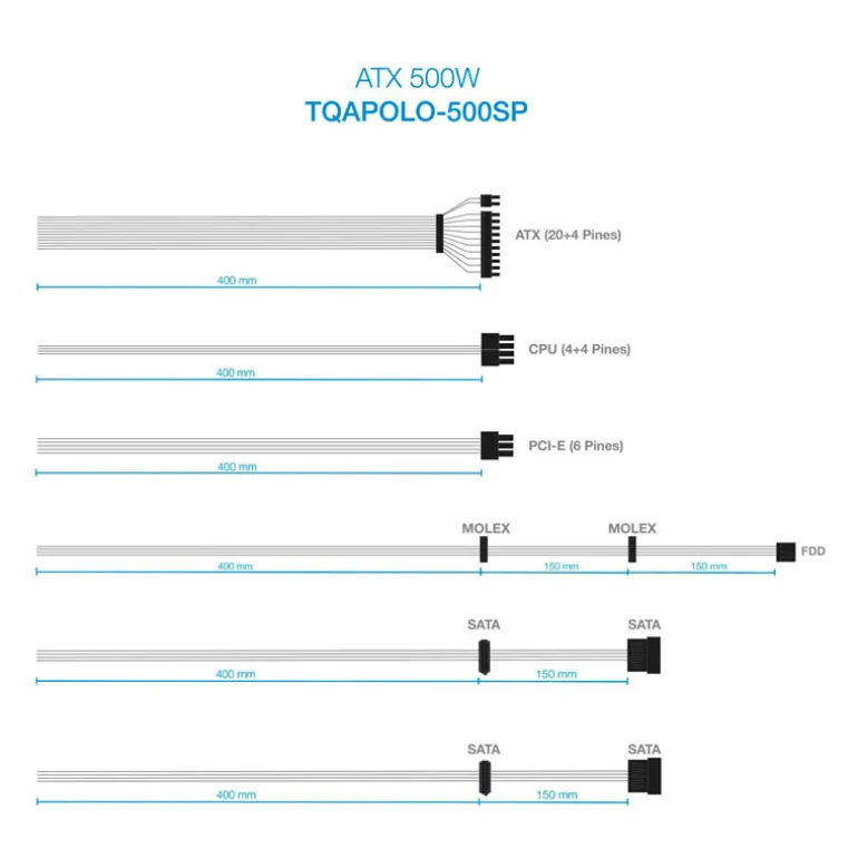 La fuente de alimentación TQAPOLO-500SP combina eficiencia y rendimiento con una potencia de 500W y una eficiencia superior al 78%, asegurando un suministro estable y confiable para sistemas informáticos exigentes. Equipada con PFC Activo y certificaciones CE y RoHS, cumple con los estándares más estrictos de seguridad y eficiencia energética.
