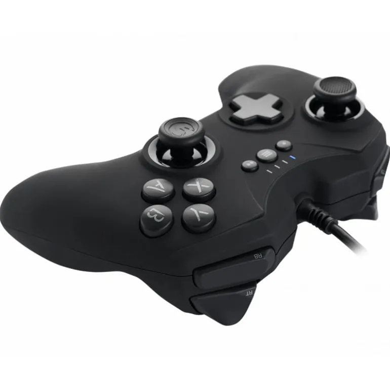 El GC-100XF es un mando para PC (XInput y DirectInput8) que se ajusta a todos los tamaños de mano. Apreciado por los gamers debido a su insuperable relación calidad-precio, este mando está hecho para durar. Su superficie de tacto suave garantiza un agarre cómodo, incluso tras largas sesiones de juego. Los dos joysticks analógicos asimétricos son ideales para shooters en PC. También cuenta con 6 botones de acción, 2 gatillos, 2 botones superiores y una cruceta de 8 direcciones.