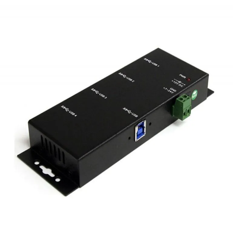 El Concentrador USB de Uso Industrial de 4 Puertos con Soporte de Montaje (USB 3.0), ST4300USBM brinda una solución muy simple para ampliar las prestaciones USB actuales de un sistema puesto que proporciona 4 puertos USB 3.0 externos desde una única conexión host USB 3.0 alcanzando velocidades de hasta 5 Gbps. Diseñado para entornos operativos extremos, este concentrador de calificación industrial ofrece confiabilidad bajo prácticamente todo tipo de condiciones y se puede instalar en la mayoría de las superficies. Compatible con la especificación USB 3.0 SuperSpeed, este concentrador USB de uso industrial también es compatible con sus predecesores USB 2.0 y 1.x por lo que ofrece soporte simultáneo a periféricos USB de versiones anteriores o incluso a sistemas más antiguos desprovistos de prestaciones USB. Ofrece 2-años de garantía y soporte técnico gratuito de por vida con el respaldo de StarTech.com.