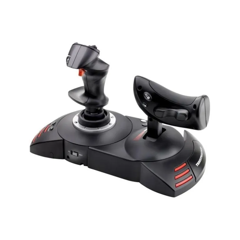 El T.Flight HOTAS X es un accesorio completo que incluye un joystick de alta precisión y un acelerador desmontable que se puede usar separado o unido al joystick, en función de la posición preferida del jugador (escritorio, sofá, cabina鈥á diseñado para los pilotos en ciernes que desean un set de dos manos para la simulación de vuelo.