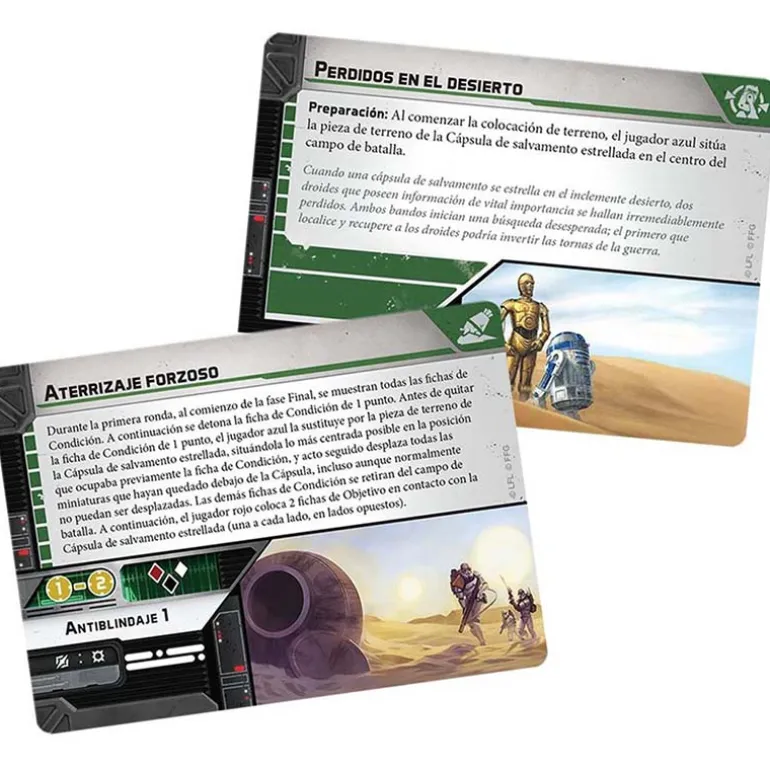 Este pack de expansión para Star Wars: Legión presenta una amplia gama de elementos clave del universo de Star Wars. Contiene una miniatura de la Cápsula de Salvamento Estrellada, junto con las detalladas representaciones en miniatura de C-3PO y R2-D2. Además, incluye nuevas cartas de Batalla, Unidad, Mejora y Mando que añaden profundidad y emoción a tus partidas de Star Wars: Legión.
