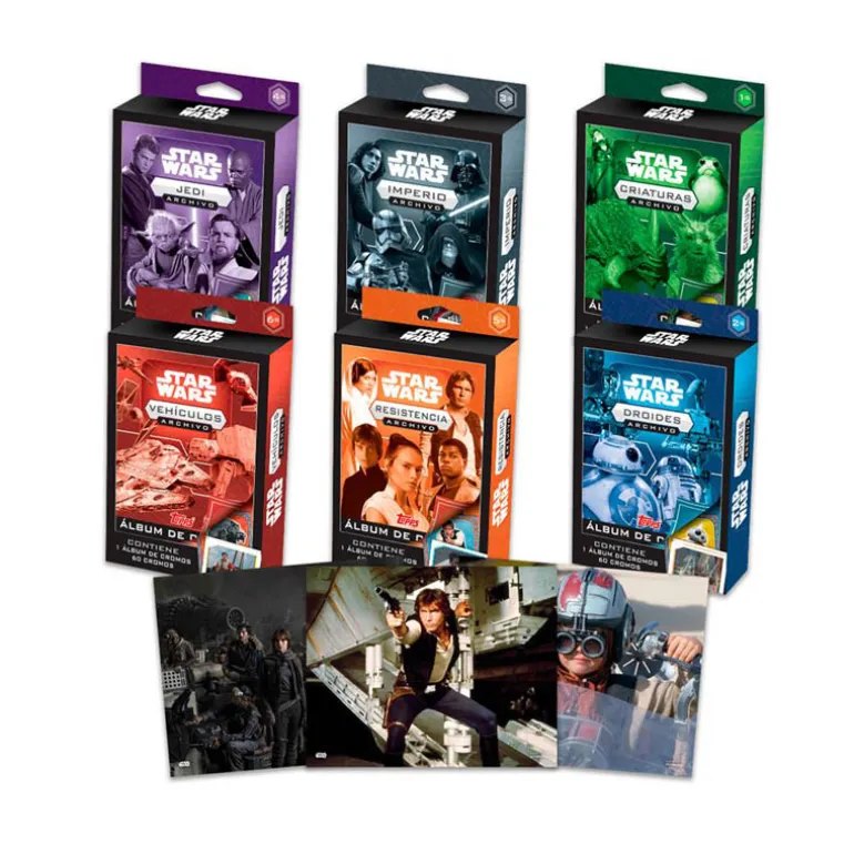 Cada caja está cuidadosamente diseñada para proporcionarte una colección completa y emocionante. Con 6 sobres de cromos, un mini álbum de cromos y una carta red lens para una revelación especial en cada una, tendrás todo lo que necesitas para sumergirte en el universo de Star Wars. Además, cada set viene con un expositor para mostrar orgullosamente tu colección.