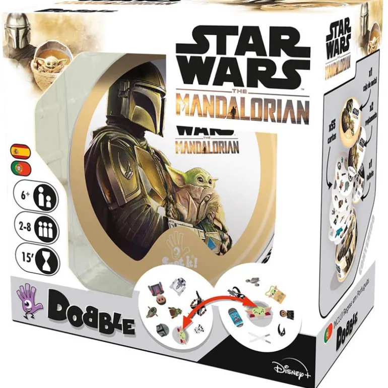 ¡Prepárate para desafiar tus habilidades de observación y reacción mientras te sumerges en el emocionante mundo de The Mandalorian con Dobble Star Wars: The Mandalorian!