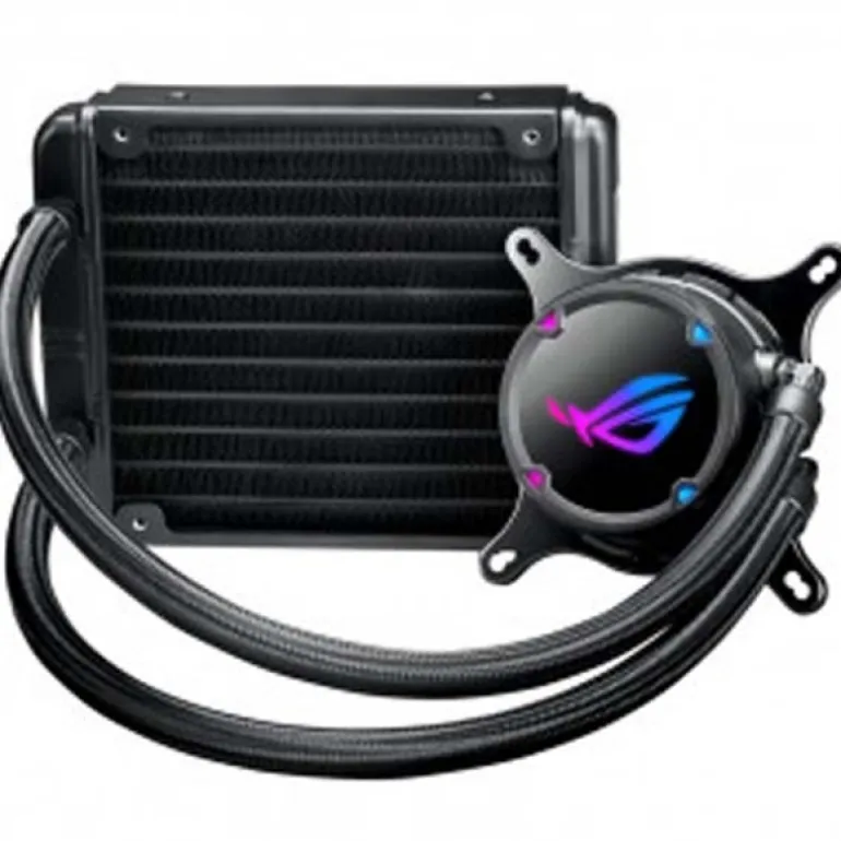 Disipador CPU líquido todo en uno ROG Strix LC 120 RGB con Aura Sync y ventilador de radiador RGB direccionable ROG de 120 mm.