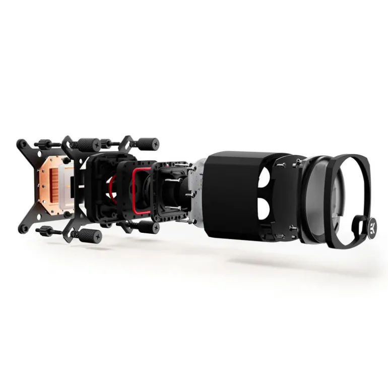 Todos los EK-Nucleus AIO tienen un bloque de agua para CPU compatible universalmente, que se ajusta a todos los últimos sockets de CPU de Intel y AMD. El proceso de instalación es muy sencillo, gracias al manual y al mecanismo de montaje incluidos. Este producto requiere suficiente espacio para montar un solo radiador delgado de 360 mm, por lo que es compatible con casi todos los estuches modernos.