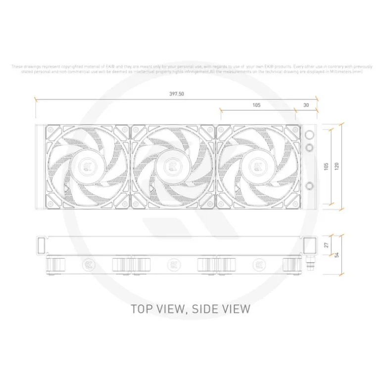 La parte superior permite reorientar el logotipo de EK sin importar en qué dirección se instale el enfriador. La orientación se puede cambiar en incrementos de 90 grados, por lo que si el enfriador se instala boca abajo, gírelo 180 grados para mostrar el logotipo correctamente. Independientemente del ángulo necesario para instalar el AIO, siempre ofrecerá una estética limpia y alineada.