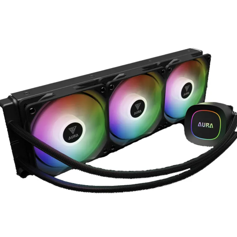 El AURA GL360 LITE es un eficiente enfriador líquido ARGB equipado con un motor potente, una base de cobre mejorada y un sistema optimizado de circulación de líquido para un rendimiento confiable. También cuenta con una tira de luz en el cabezal de la bomba, agregando un toque elegante a tu configuración.