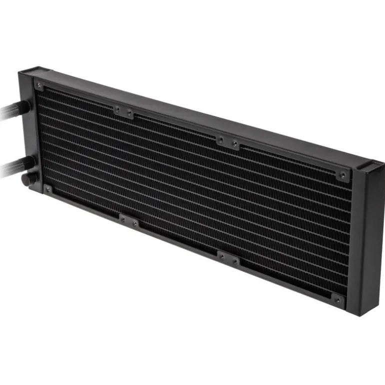 - Radiador de aluminio con alta densidad de aletas y revestimiento de color negro puro.