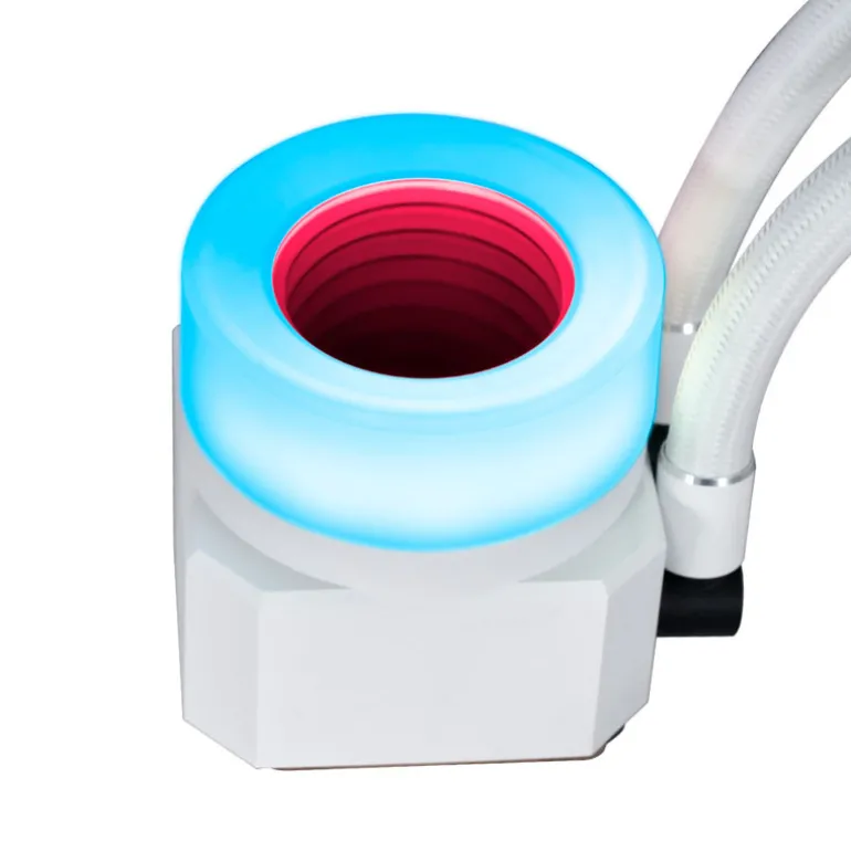 La bomba Galahad II Trinity Performance de color blanco, impulsa el rendimiento con su tamaño ampliado para mejorar la eficiencia de enfriamiento. Ofrece opciones de diseño personalizables con tres tapones intercambiables y efectos de iluminación ajustables. Su radiador de aluminio de alta densidad de 32 mm disipa el calor eficazmente. Los ventiladores LCP de alto rendimiento se pueden conectar en cadena para una mayor disipación de calor. El conector de tubería de 45° permite una instalación versátil. La instalación es sencilla gracias a las placas traseras rediseñadas y se incluye pasta térmica. El software L-Connect 3 permite un control preciso de la iluminación y la velocidad, y la conexión es sencilla con el controlador integrado. Se pueden conectar dispositivos ARGB y ventiladores adicionales para controlarlos a través de L-Connect 3. Se requiere ARGB de 5V para la sincronización con la placa base.