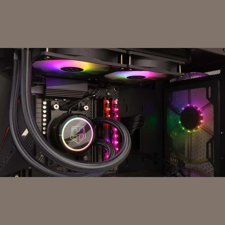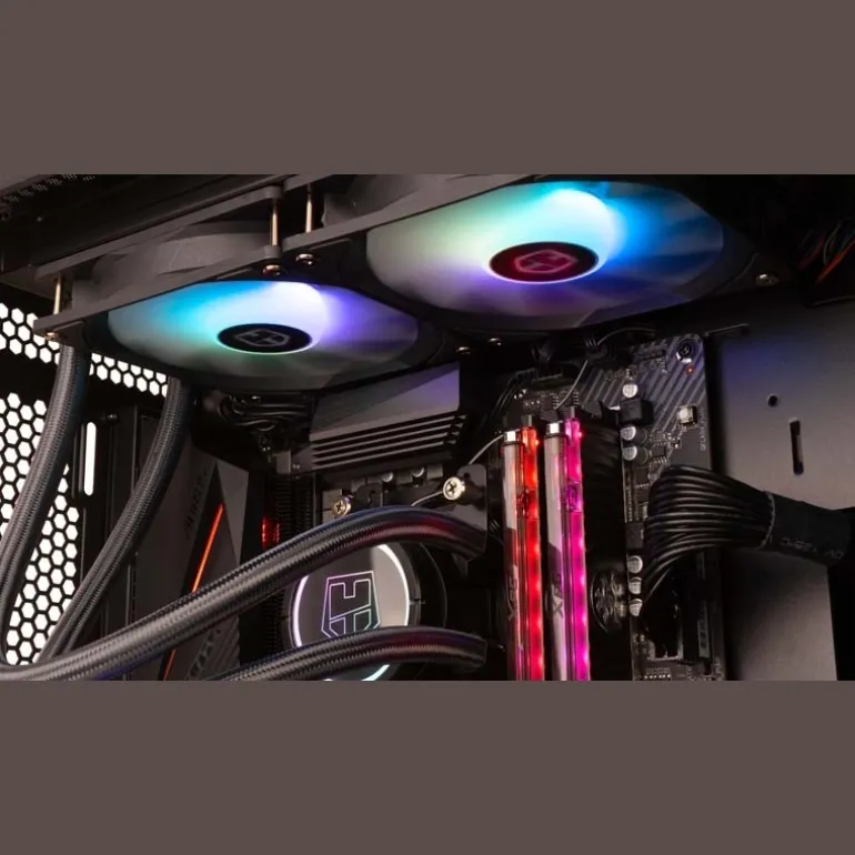 Su radiador de 240 mm y sus aletas aerodinámicas (que disminuyen las turbulencias entre ventilador y radiador) proporcionan a H-240 ARGB una alta eficiencia en el intercambio de calor y refrigeración de todo tu equipo.