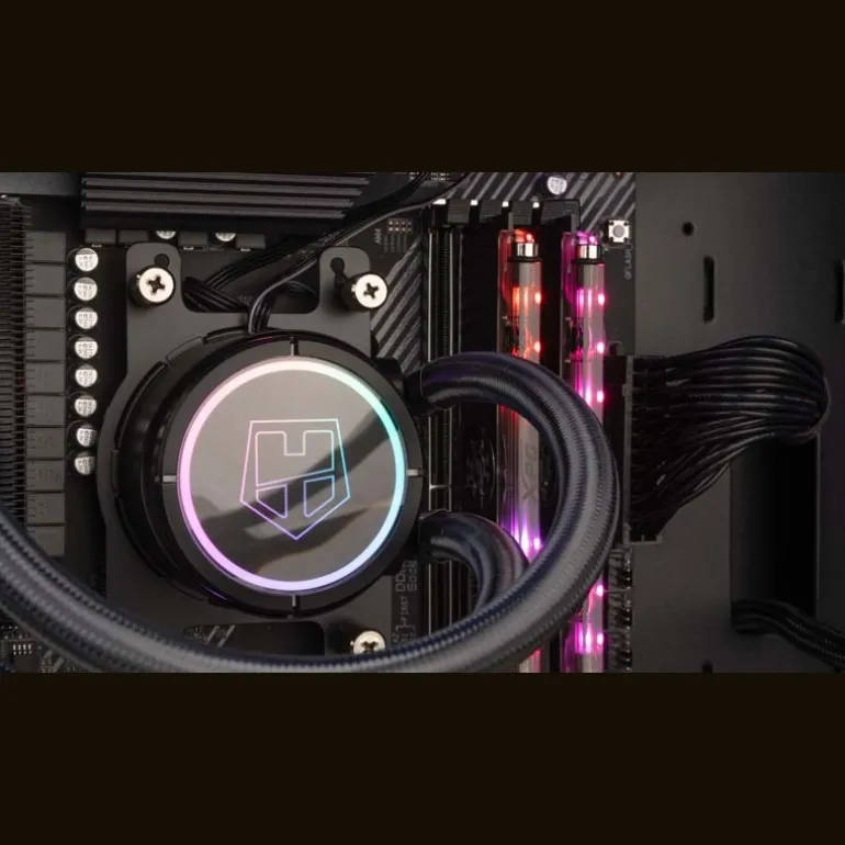 Hummer H-240 ARGB posee una bomba con base de cobre (para una alta conductividad) capaz de mover un gran caudal de líquido refrigerante (2100 RPM) y poder reducir al instante la temperatura del procesador.