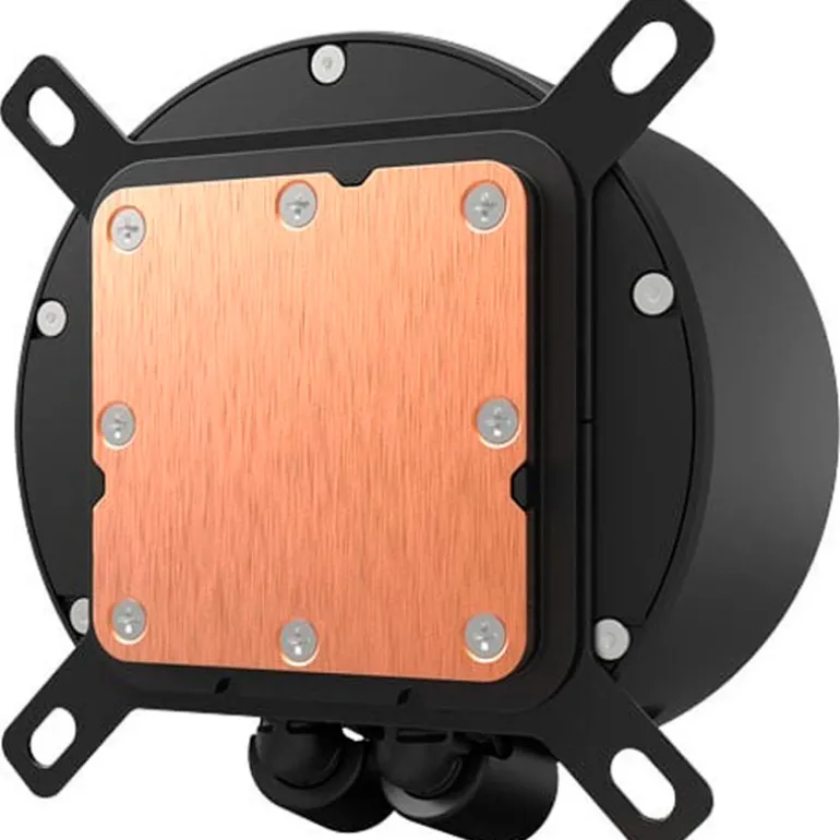 La base split-flow permite que el refrigerante se distribuya uniformemente por los canales, asegurando un contacto eficiente con CPUs AMD o Intel para una disipación térmica rápida y homogénea.